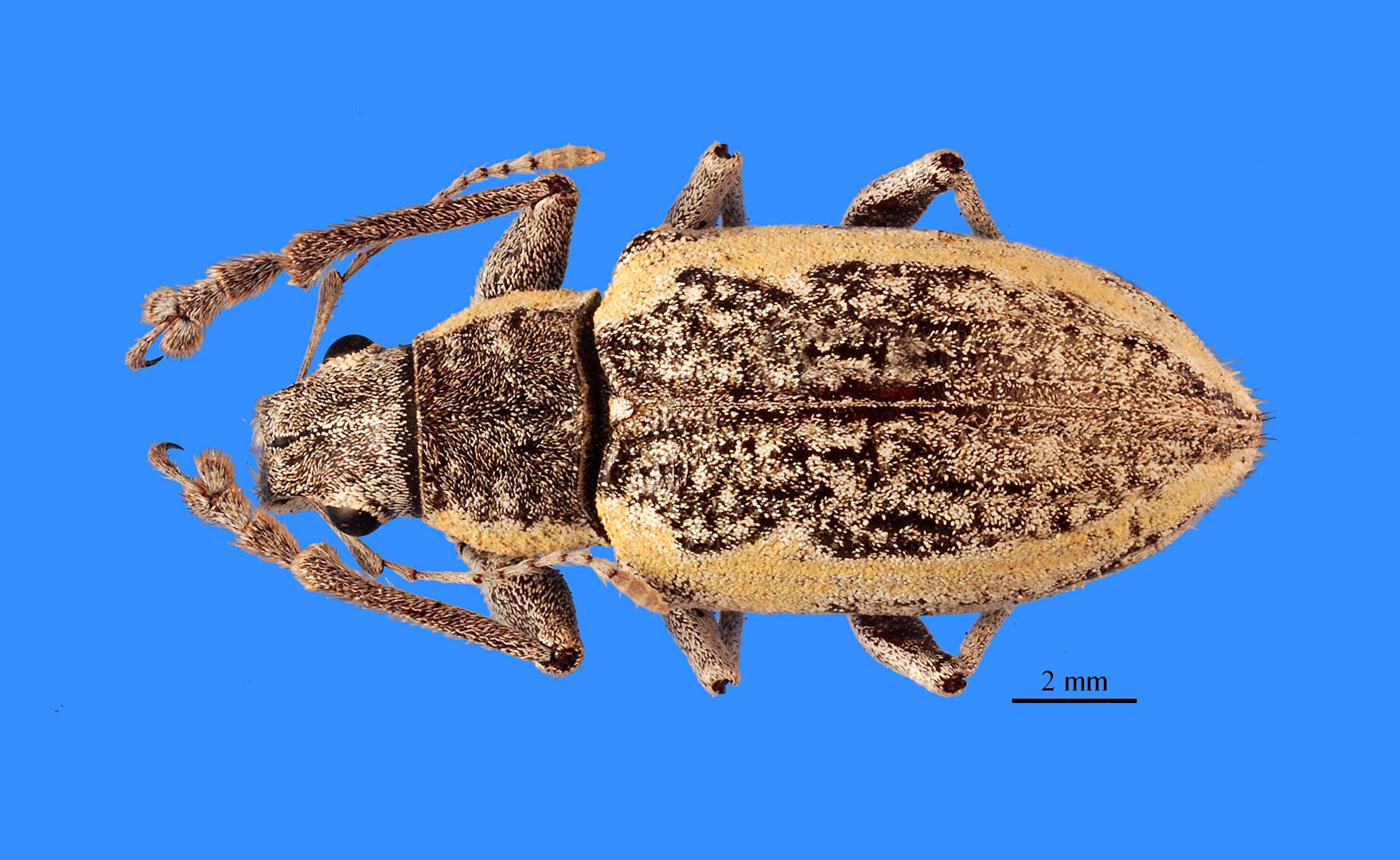 Naupactus tarsalis is similar to N. schapleri in body size, shape and color pattern, and mainly differentiates because has more convex eyes and more elongate elytra.